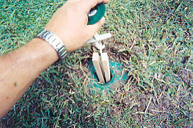 2. The stations will be checked regularly for termite activity. Termites in the soil, foraging continuously for food, find and begin feeding on the monitoring devices in the Sentricon station. |